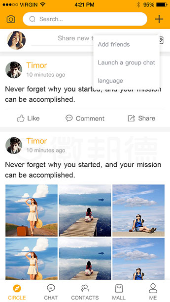 YOUMEPASS你我通集大众的分享,文章的分享,个人的新鲜事物的分享,图片的分享,每日的新鲜事物的分享。广告宣传等活动。人民的移动聊天,人与人之间的钩通与联系,双方发信息或者语音,也可以视频通讯,图片的往来,文件的往来等。朋友群的钩通与联系,新鲜事物的分享。组织团队会议等,地图导航等。邦德开发为客户提供APP效果图设计,APP接口开发,APP程序开发和数据库开发,每位客户均按照需求提供定制设计开发,签订合同,分期付款,并提供完善的售后技术支持。以下APP案例效果图我们为了防盗打了水印,APP案例可提供演示和详细功能开发清单,详细内容可以咨询邦德开发客服人员微信!